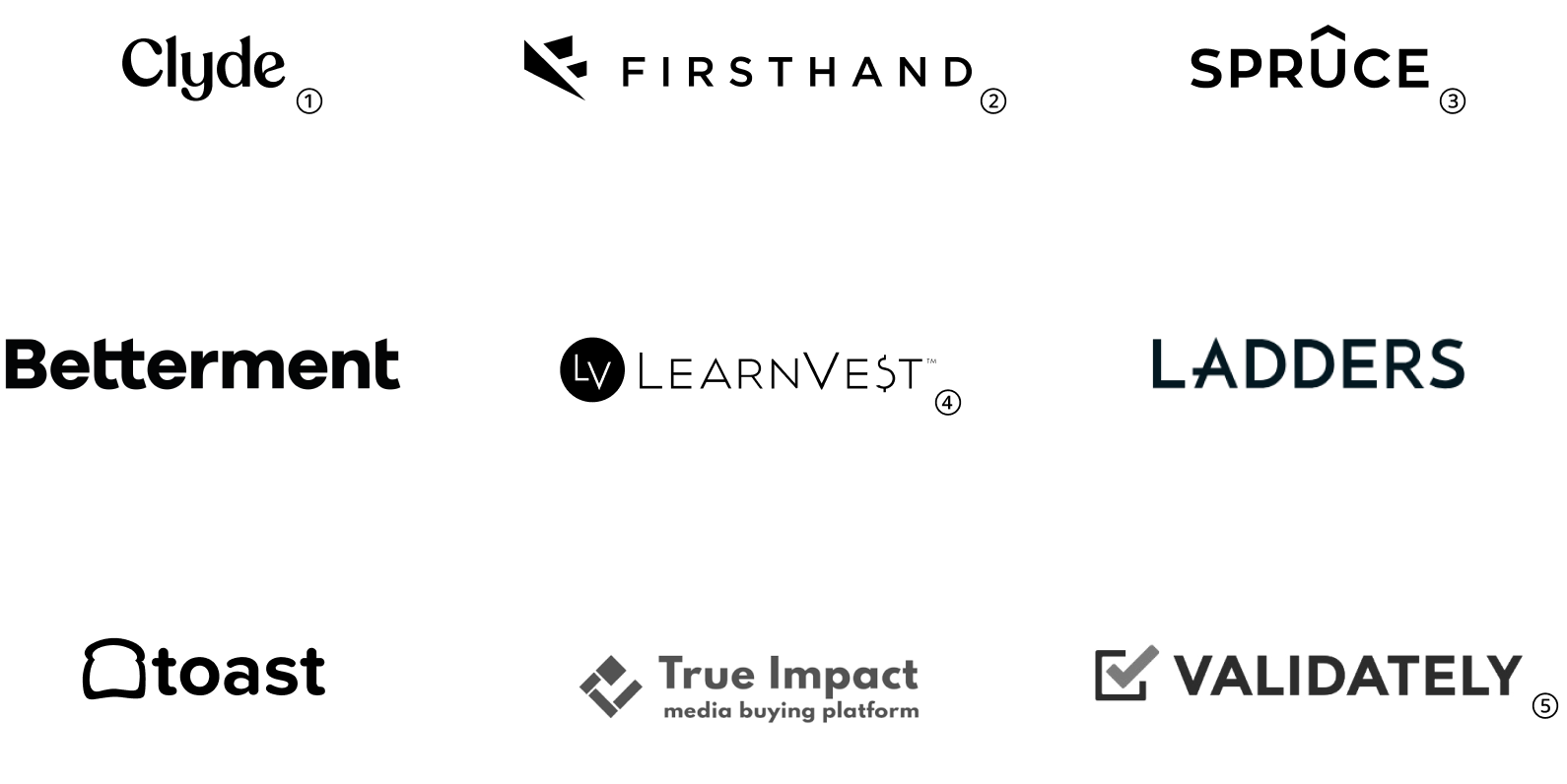 ① Cover Genius / ② Infobase / ③ Zillow / ④ Northwestern Mutual / ⑤ UserZoom